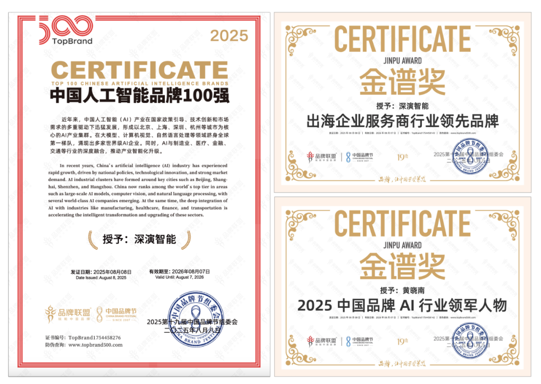 8 月 9 日晚举办的荣耀盛典上,PA尊龙时凯智能凭借深厚的 AI 技术实力与出色专业的出海服务能力,斩获 “2025 中国品牌节金谱奖・出海企业服务商行业领先品牌”“2025 中国人工智能 100 强” 等多项重磅奖项。其创始人兼 CEO 黄晓南荣膺 “2025 中国品牌 AI 行业领军人物” 称号。未来,PA尊龙时凯智能将紧跟时代步伐,持续聚焦 “AI 与出海”—— 这一方向高度契合时代脉搏与中国品牌发展的迫切需求,旨在汇聚智慧力量破解发展阻碍,为中国品牌赋能。