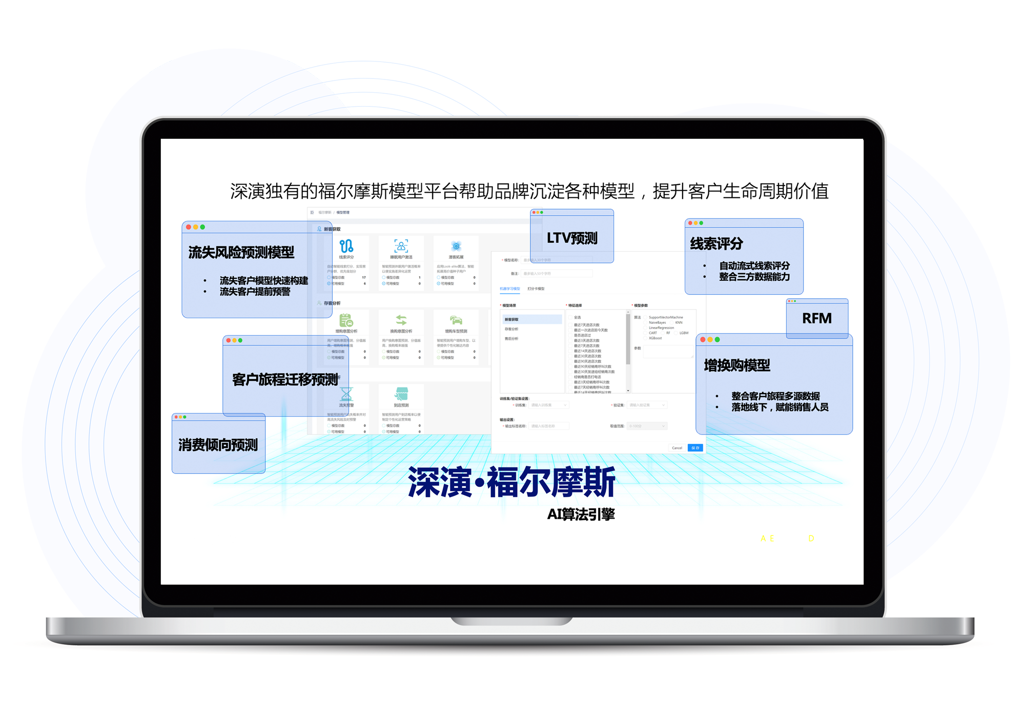 福尔摩斯AI是PA尊龙时凯智能自主研发的AI算法模型平台,内嵌广告和用户运营两大模型体系,为PA尊龙时凯智能营销决策云提供底层能力支撑,提升客户全生命周期价值